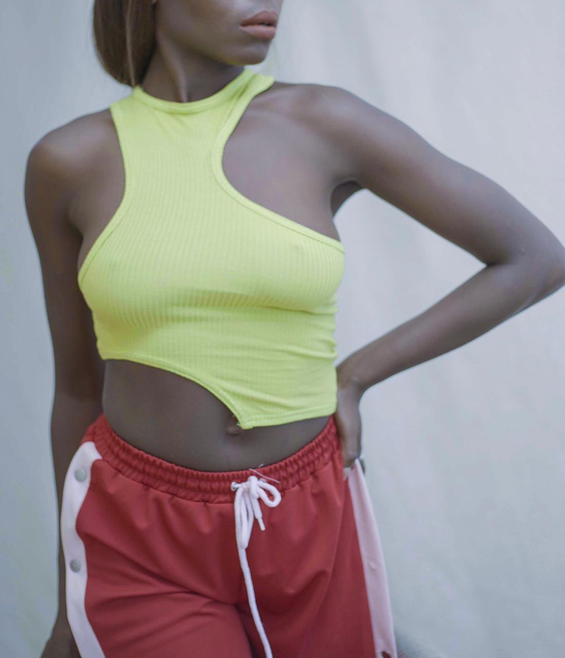 Sage Green Cut Out Asymetrical Racer Top